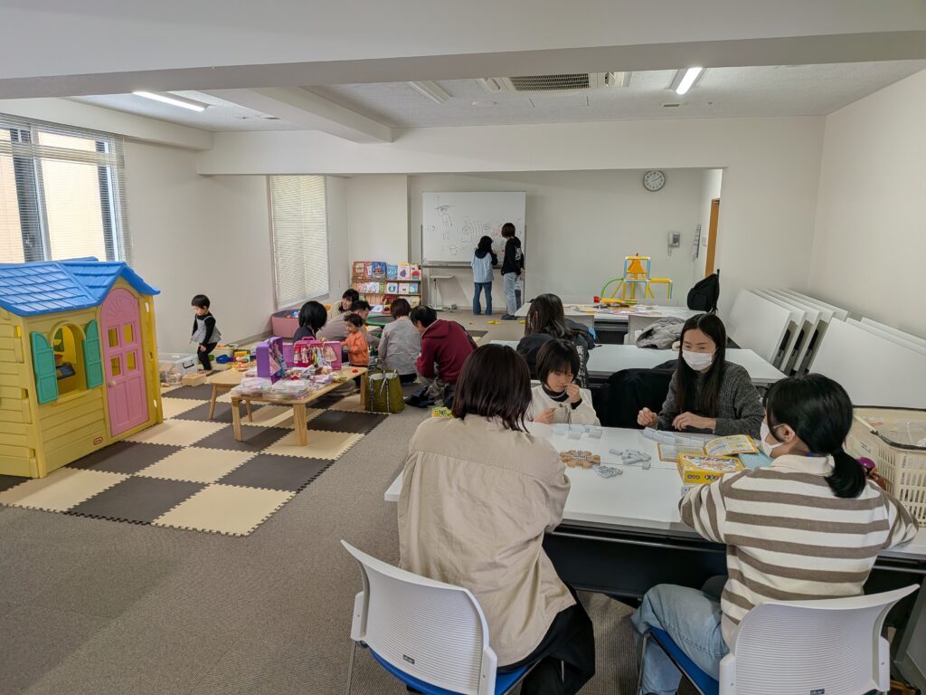 子ども達を対象にしたあそびの会、たくさんのおもちゃで子どもたちやその保護者と自由に遊んでもらう場です。